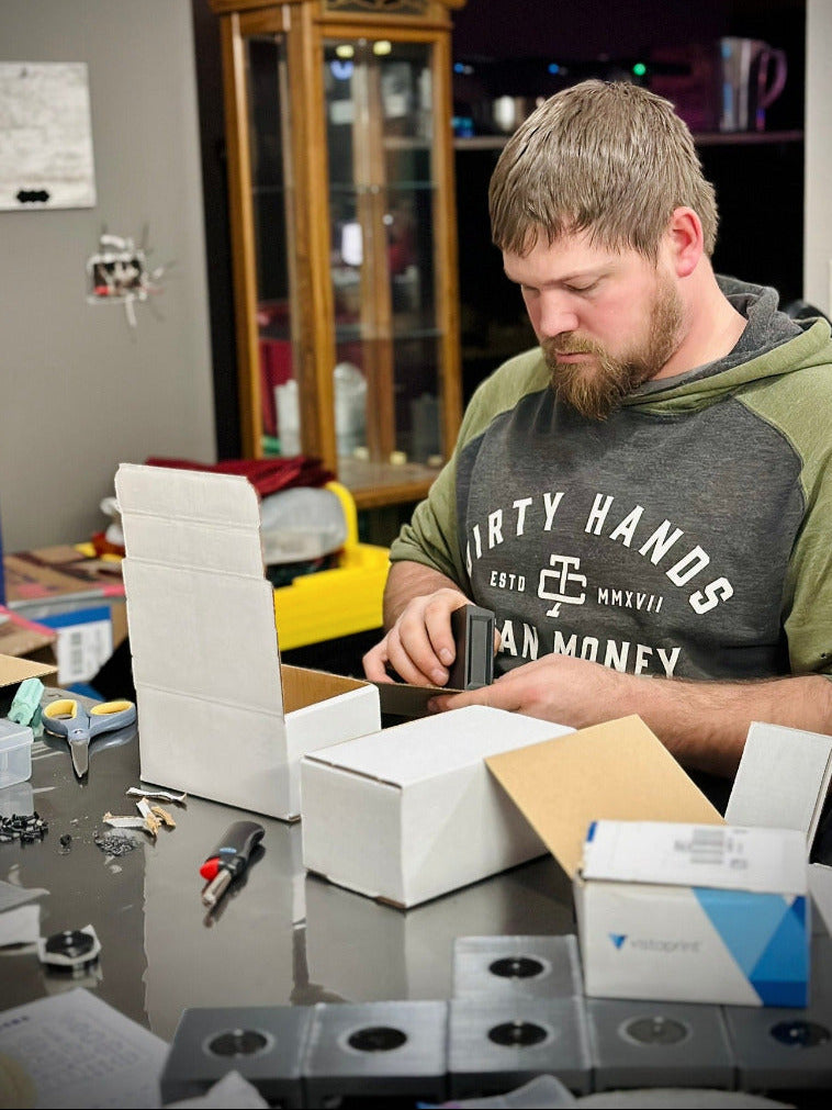 Andrew had the idea for the Magnet Buddy in early 2023. He taught himself Fusion360 so he could make his very own design and we print them on our own 3D printers. He was working in a factory at the time and realized there was a simple yet common need for a convenient way to manage tool batteries, especially for those who frequently use drills and other power tools. Andrew's passion for tinkering and building was instilled from a young age, growing up alongside his Dad, Grandpa, and Uncles who were always working on something. Idle hands were not common in their family, and this hands-on experience laid the foundation for his entrepreneurial